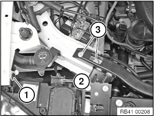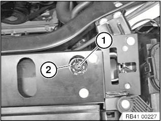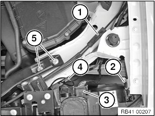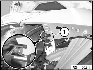 Open clutch (1) and detach Bowden cable for hood/bonnet release.