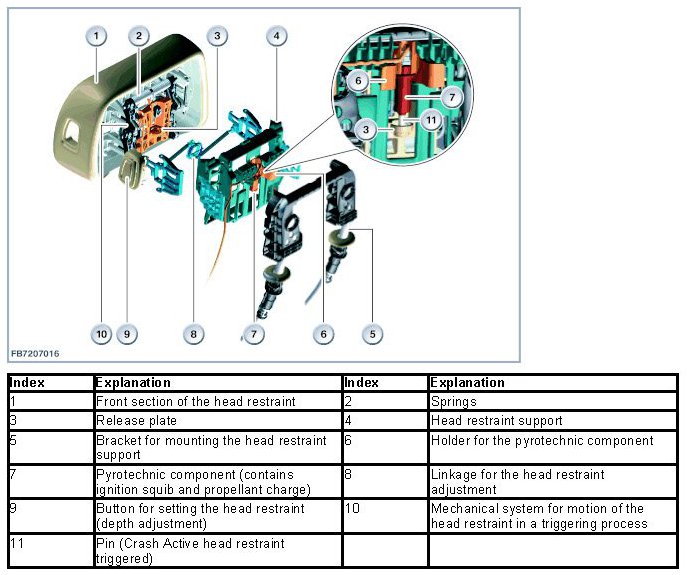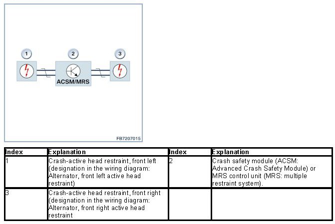 - The ignition squib in the pyrotechnic component ignites the propellant charge. The pyrotechnic component contains the ignition squib and propellant charge (designation in the wiring diagram: "Alternator active head restraint front left" and "Alternator active head restraint front right").