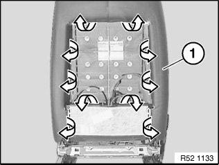 Pull off backrest cover (1) with padding sideways and towards top from backrest frame.
