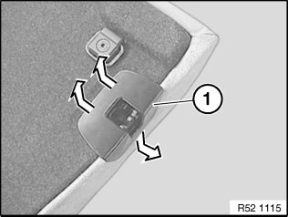 Gently slide lock trim (1) on side edge of backrest downwards and unclip to one side.