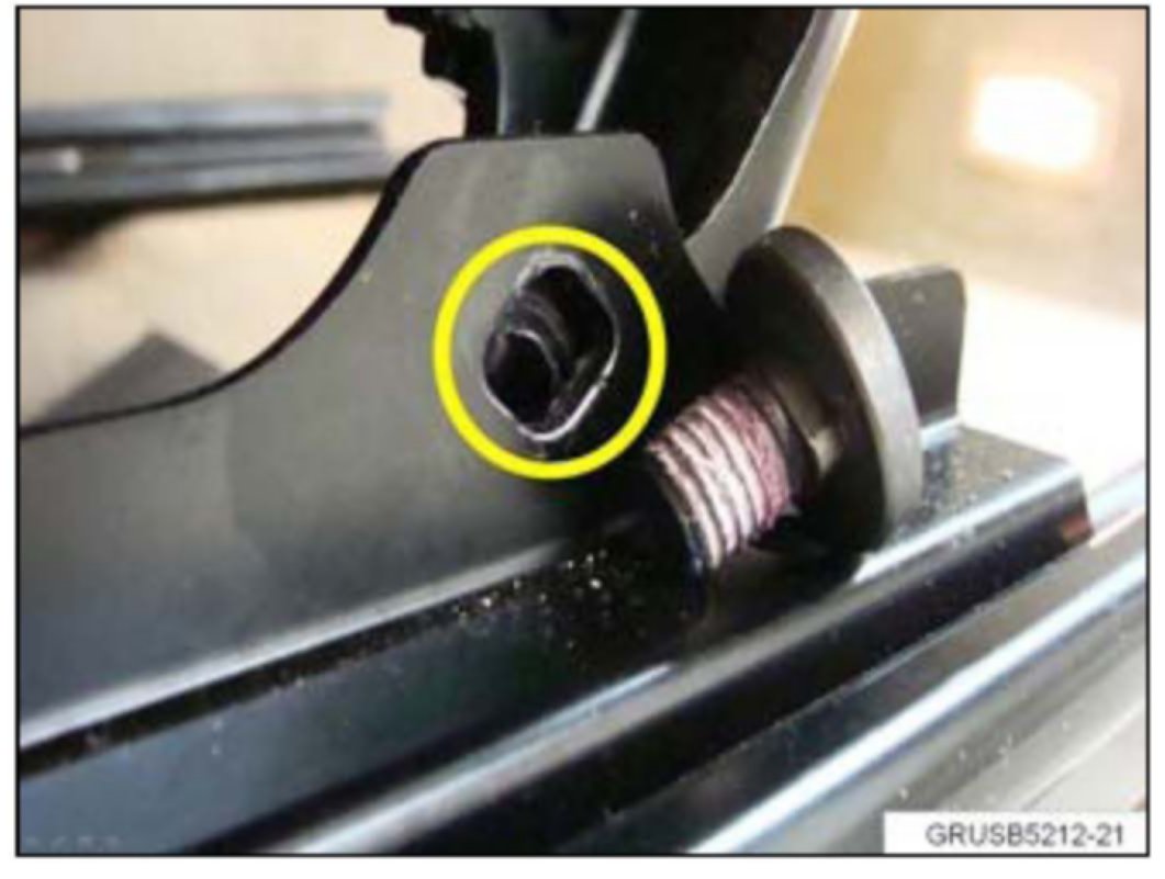 The bolt must be properly keyed into the hex opening of the seat base. This will prevent the bolt from turning when tightening torque is applied. Repeat the same procedure to the other side front bolt.