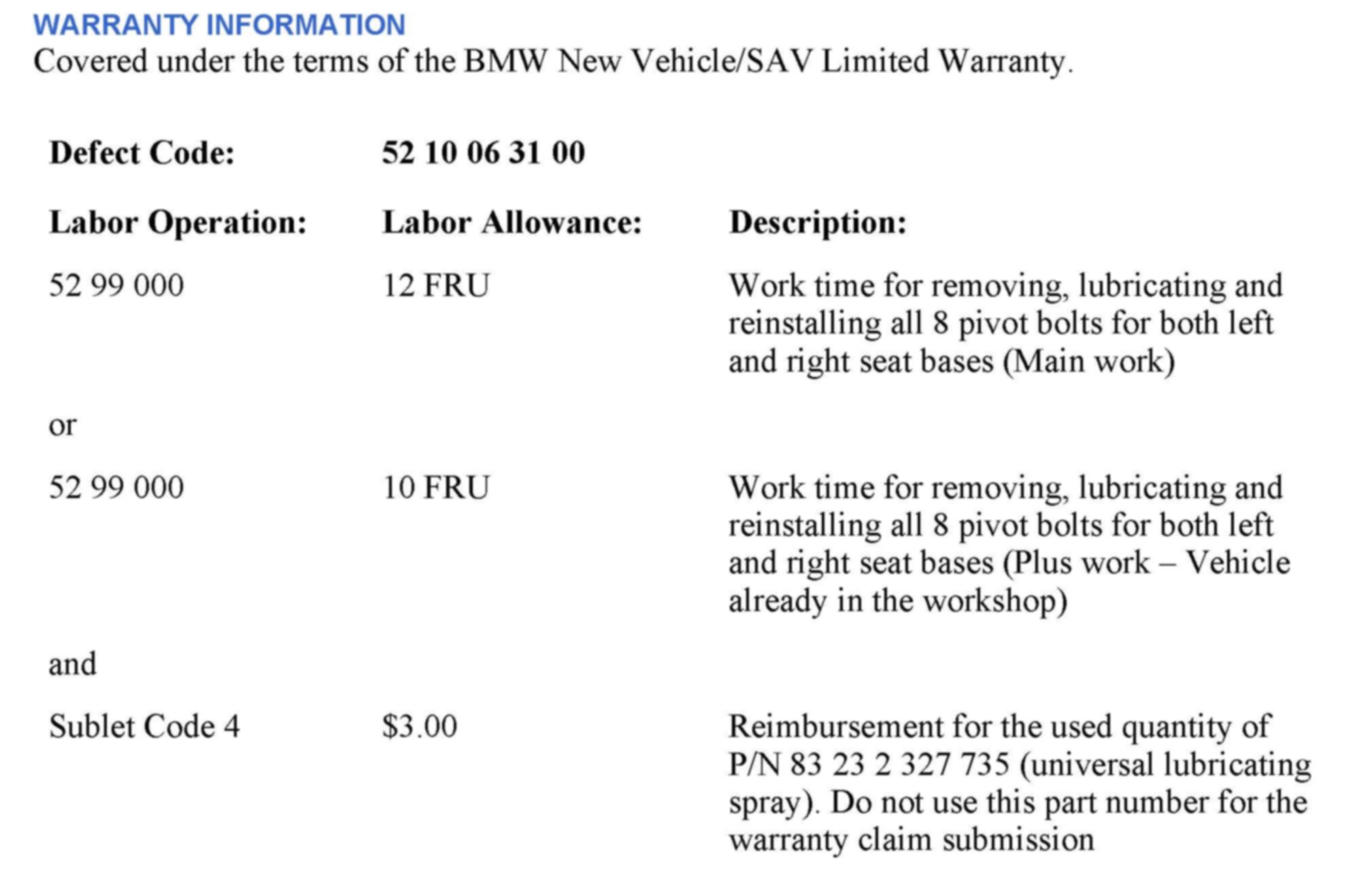 5. Torque both rear nuts to 40Nm +/- 4. Return the seat to the original position and reinstall the decorative trim. Quality check the repair to confirm the creaking noise is gone.