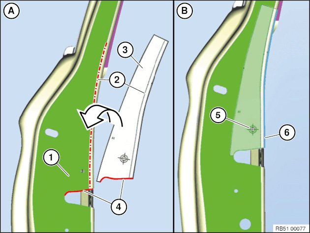 Graphic (B): checking position of template relative to inner door panel after sticking on