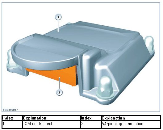 The centre console operating facility starting with F20 has only 1 plug connection to the Integrated Chassis Management (ICM). Observe the wiring diagrams in the diagnosis.