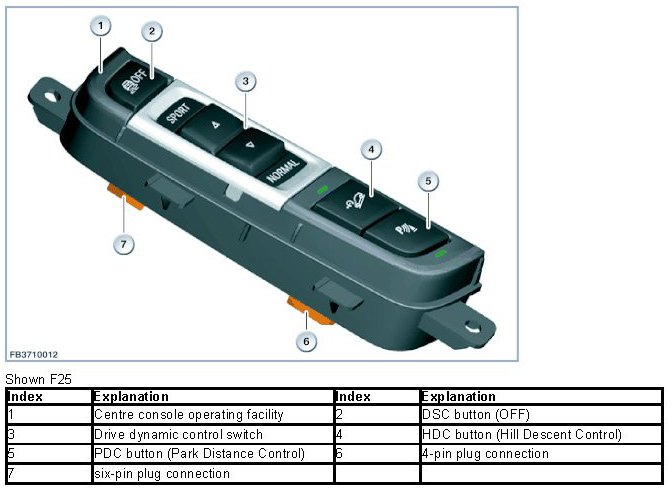 The driving experience switch controls the Dynamic Driving Control. The Dynamic Driving Control boasts the following new features: All of the drive and driving stability control systems installed in the vehicle are activated. The central control unit for this is the Integrated Chassis Management (ICM). The driving experience switch and DTC button are electrically connected to the ICM.