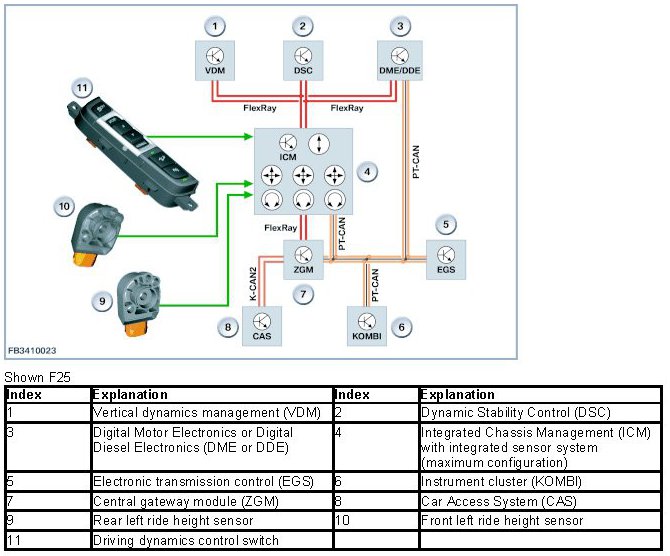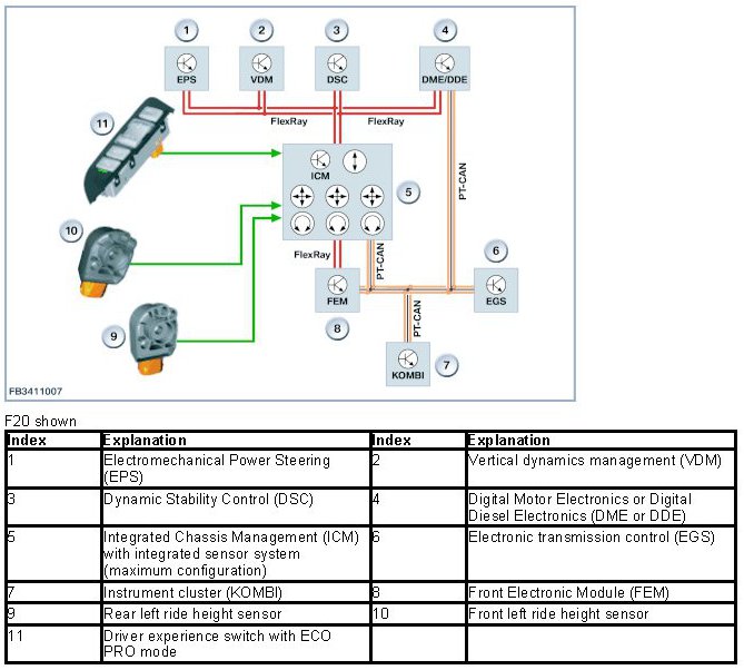 The ride-height sensors are mainly needed for the exterior lights. The ICM control unit also places the signal on the FlexRay for the Vertical Dynamics System (VDM).