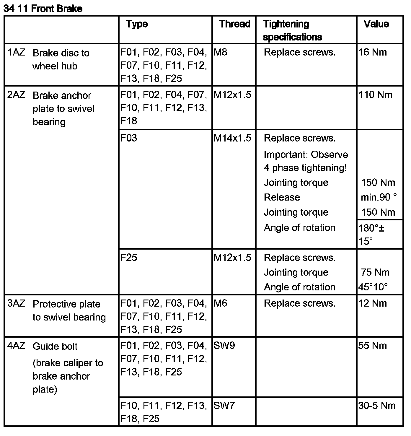- Read and comply with notes on braking in new brake discs / brake pads.
