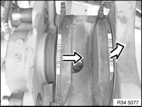 So as not to damage the surface coating, if possible do not mechanically clean the guide surfaces for the brake pads on the brake caliper mounting bracket.