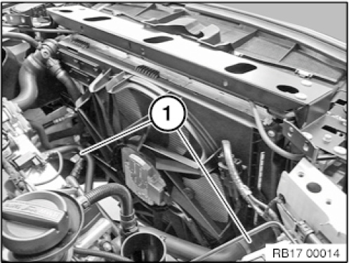 Catch and dispose of drained coolant in drip tray (1) and if necessary special tool 00 2 030 (universal hydraulic lifting equipment).