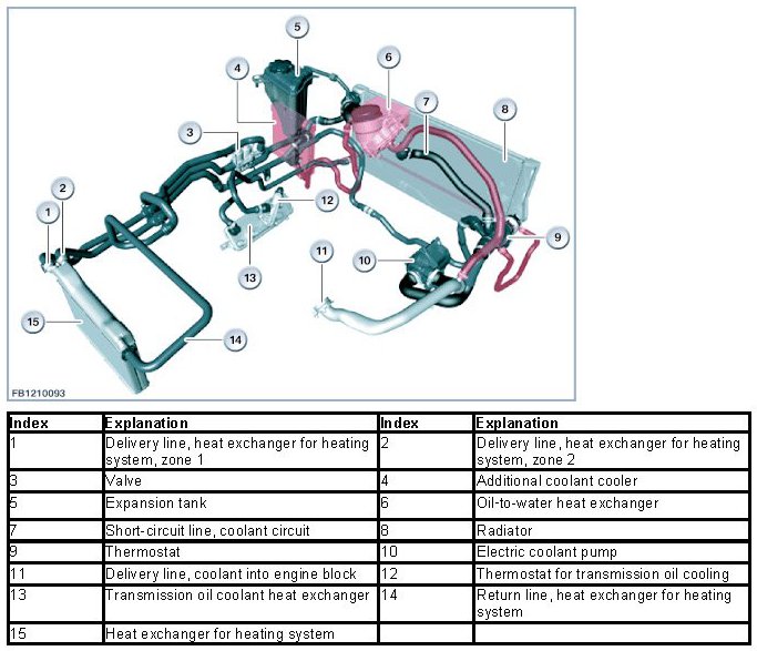 The European version has been fitted with an additional coolant cooler on the left-hand side of the vehicle. The additional coolant cooler is connected to the coolant lines parallel to the radiator, thus enlarging the surface area for engine cooling. Engine oil cooling is implemented by means of an oil-to-water heat exchanger.