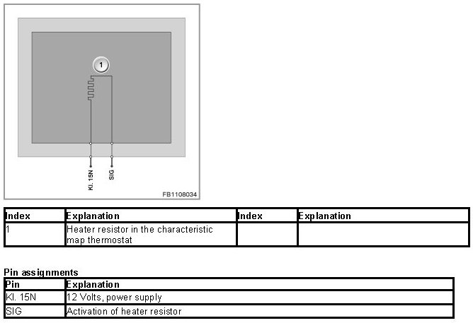 The characteristic map thermostat is supplied with 12 Volts vehicle voltage by the engine management system.