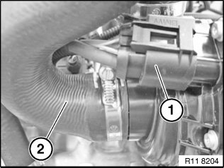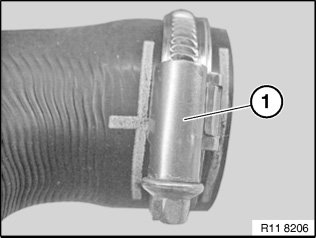 Hose clamps (1) must be installed in the centre of the marked area (see graphic).