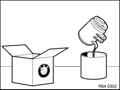 The refrigerant fluid drawn off from the oil separator of the A/C service station and from the previous compressor must not be reused and must be correctly disposed of.