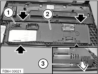 At the same time press air conditioning control panel (2) forward out of retaining frame and remove.