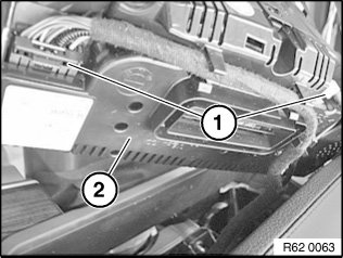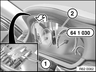 Insert special tool 64 1 030 in each case in second slot, on left and right, of instrument cluster (2).