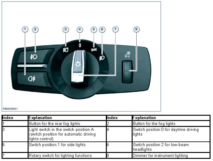 All functions of the exterior lights are controlled by the footwell module (FRM).