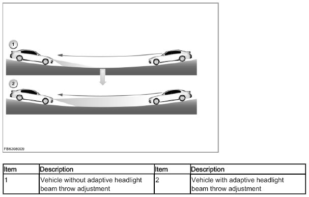 - If vehicle rear is lower than front: The actual headlight beam throw will be longer than the legally stipulated headlight beam throw. The headlight beam throw is lowered to reduce the headlight beam throw to match the legal requirement.