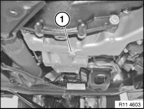 Open oil drain plug (1) of oil sump and drain engine oil.