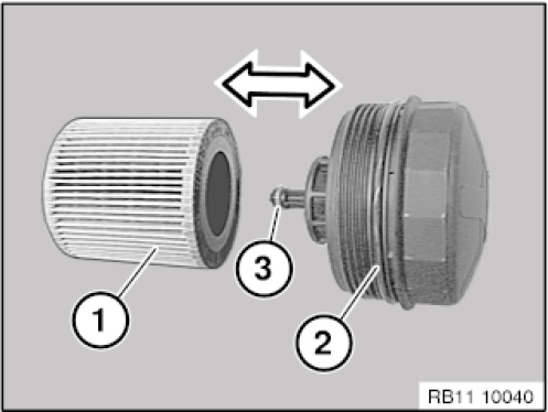 NOTE: Engine oil flows out of the oil filter housing and back into the oil sump.