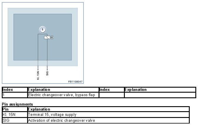 The engine control activates the electric changeover valve. This switches the partial vacuum in the system through to the partial-vacuum canister. The partial vacuum applied opens the bypass flap. The partial vacuum applied opens the bypass flap. On ventilation of the diaphragm canister (vacuum system depressurized), the bypass flap is closed by a spring.