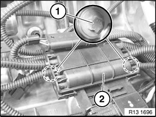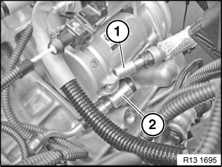 Disengage connector (1) from the fuel low-pressure sensor, oil temperature sensor and the high pressure pump and remove.