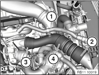 11 61 362 Removing and installing/replacing right charge-air duct (N55)Necessary preliminary work: