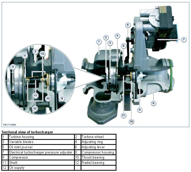- Check the oil supply to the turbocharger and the oil return from the turbocharger for foreign bodies and oil sludging, clean if necessary.