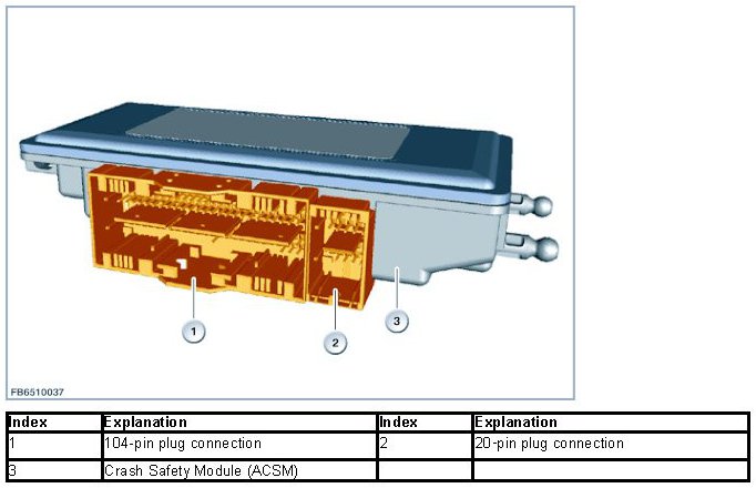 The Crash Safety Module (ACSM) is the control unit for the safety system. No sensors are installed in the Crash Safety Module.