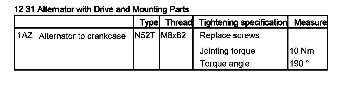 Tightening torque, 12 31 2AZ / 12 31 3AZ.