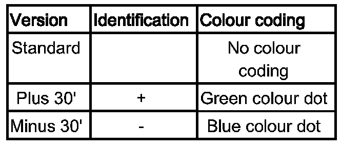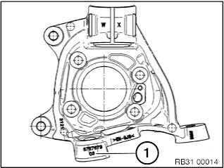 Camber correction swivel bearings are marked with an -/+ and, if applicable, with a colour coding at position (1), see image.