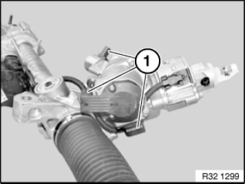 Plug connection (1) on electrical steering box must not be damaged when removing.
