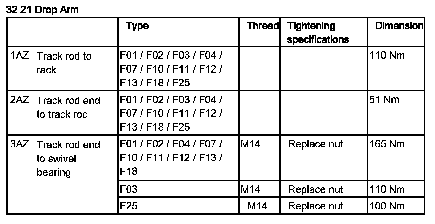^ Only if replacing/removing track rod end: Perform chassis / wheel alignment check
