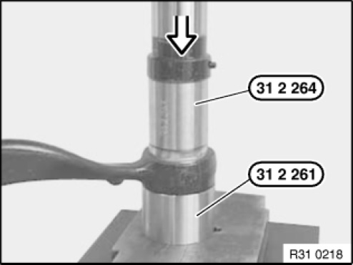 NOTE: Special tool 31 2 264 must be exactly flush with rubber mount bush.