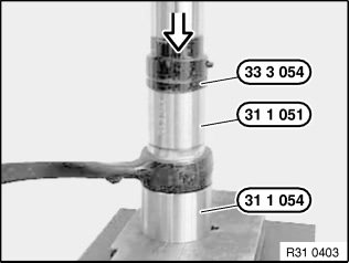 Press rubber mount out with special tools 31 1 051, 31 1 054 and 33 3 054.
