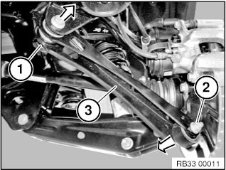 - If the trailing arm is bent, the control arm/wheel carrier screw connection must be renewed.