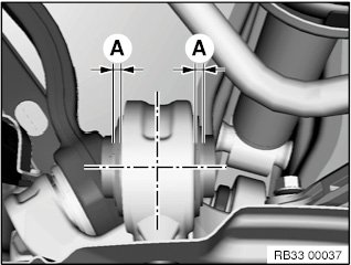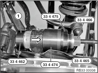 Pull rubber mount (1) in using special tools 33 4 462, 33 4 465, 33 4 466, 33 4 474 and 33 4 475.