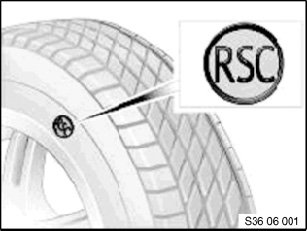Runflat tires (also known as "tires with emergency running characteristics") can be recognized by a circular symbol on the side wall bearing the letters RSC (Runflat System Component).