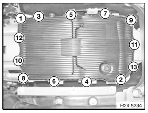 Tighten down screws in sequence 1... 13 to specified torque and angle of rotation.