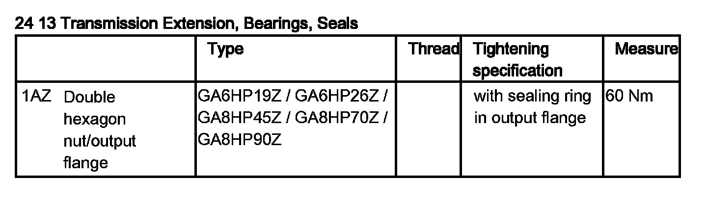 24 13 015 Replace Radial Shaft Seal For Output Flange (GA8HP45Z)