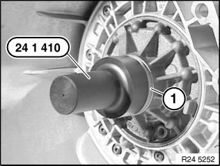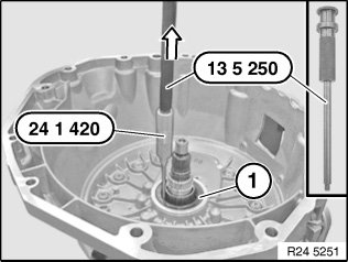 Pull out radial shaft seal (1) with special tools 24 1 420 and 13 5 250.
