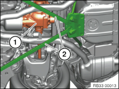 Align the rubber plate on the trolley jack to the jacking point (1) in such a way that there is no contact to adjacent components and that they are therefore not damaged.