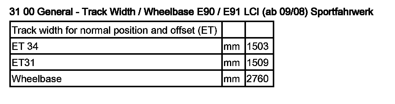 31 00 General - Track Width / Wheelbase E90, E91 / LCI (from 09/08), Sport Suspension