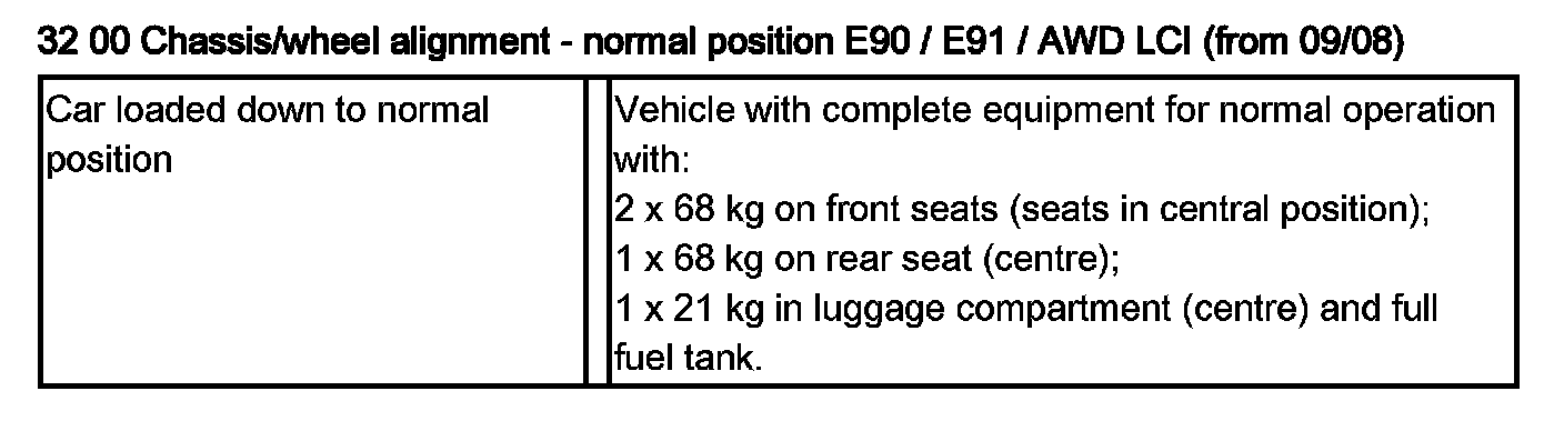32 00 Chassis/Wheel Alignment - Normal Position E90, E91 / AWD / LCI (from 09/08)