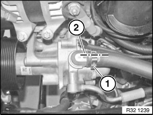 Align suction line by way of marking (2) to power steering pump connection marking.