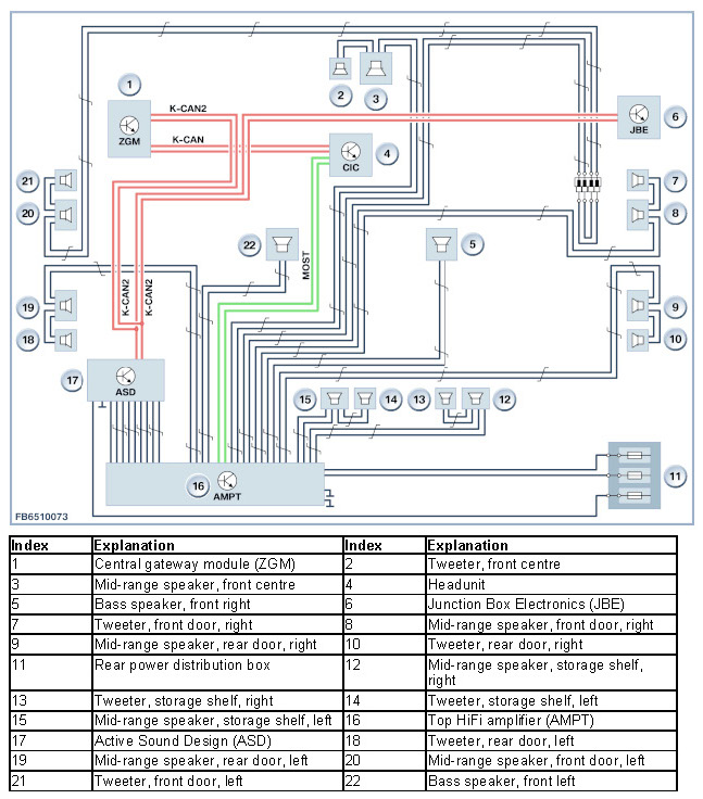 The audio amplifier is connected to "terminal 30" and GND for voltage supply. The audio amplifier is woken up using the MOST bus. The audio amplifier is active under the following preconditions: