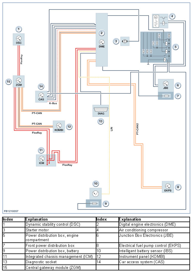 - Main bus systems: FlexRay, K-CAN, K-CAN2, MOST, PT-CAN and PT-CAN2