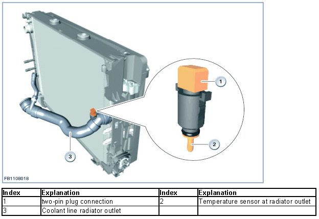Observe the following setpoint values for the temperature sensor at radiator outlet: