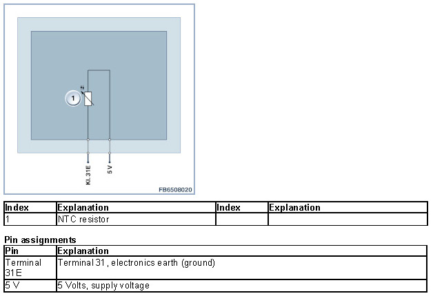 The temperature sensor converts the temperature of the coolant after the radiator into an electrical value (resistance). To do this, a resistance with negative temperature coefficient (NTC) is used. The coolant temperature is the measured variable for the following calculations, for example: Fuel injection rate and nominal idle speed.