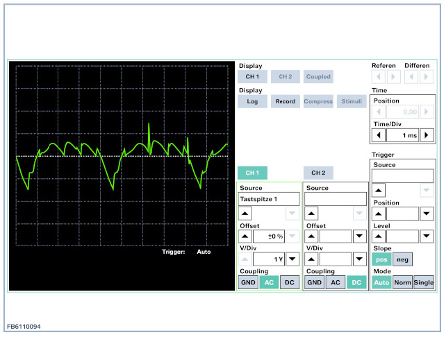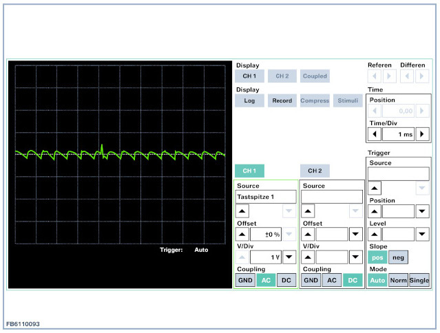 At idle speed with consumer units switched on, an error-free alternator should provide approximately this graphic.