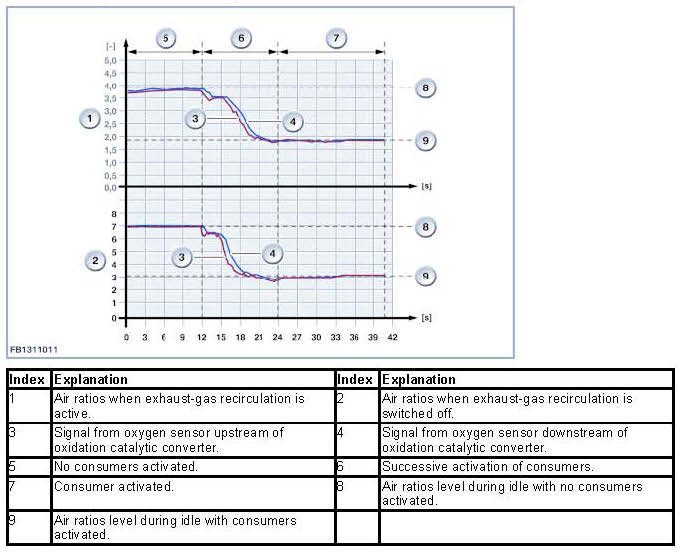 NOTE: When exhaust-gas recirculation is switched off, the air ratios during the idle phase will be somewhat higher than those shown in this example.